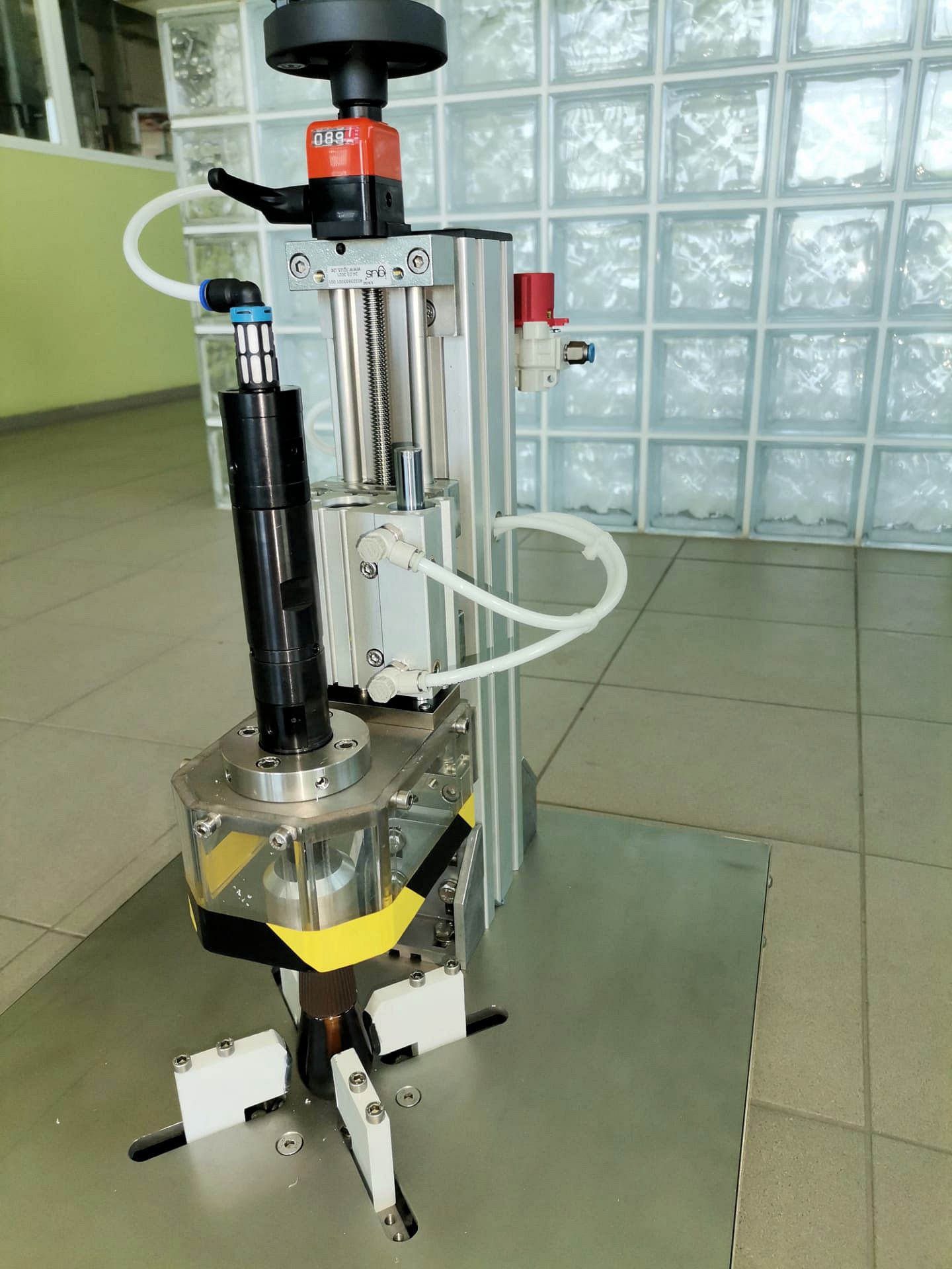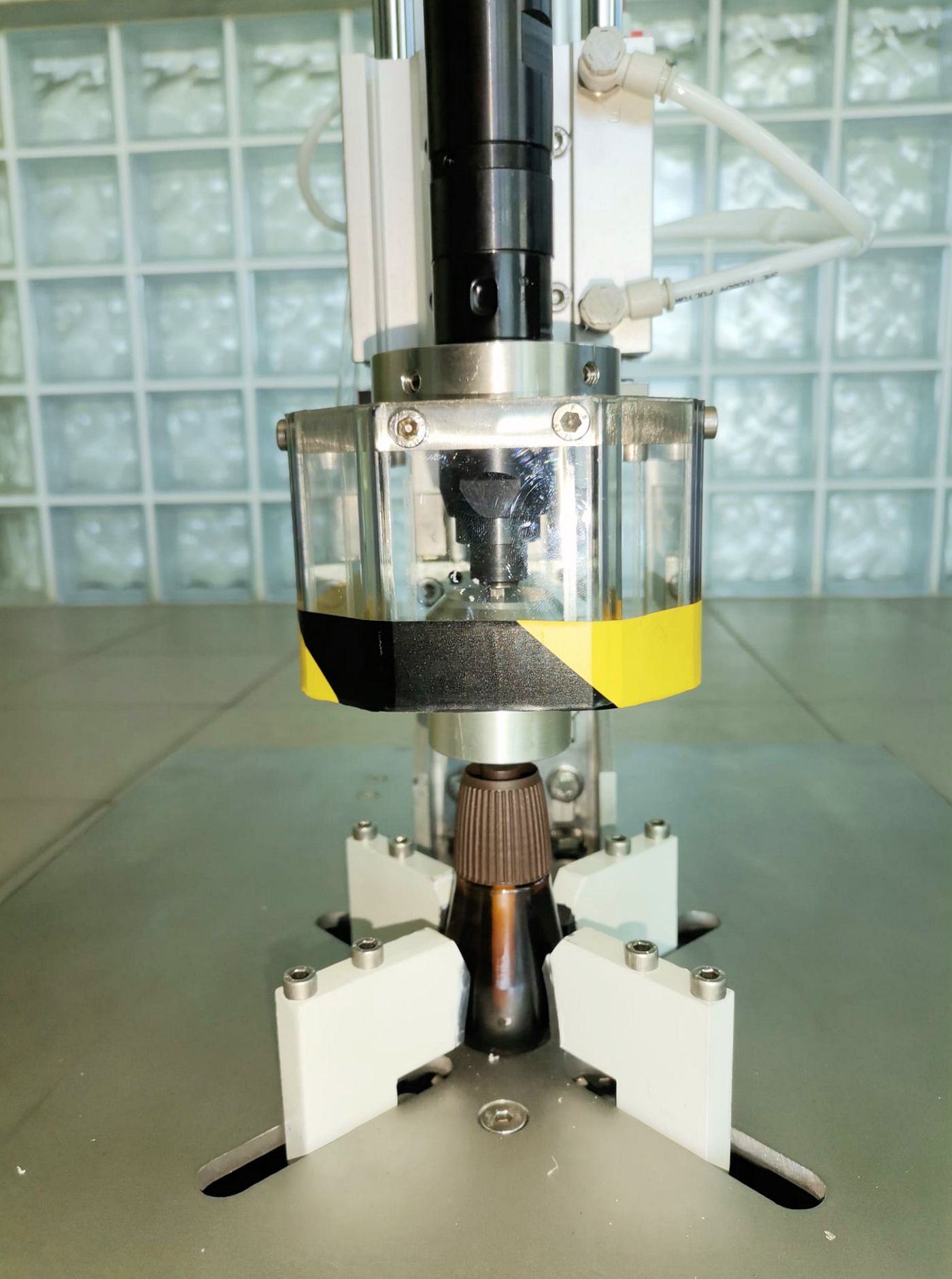 Coluna de capsulagem afinavel para diversas alturas de frascos